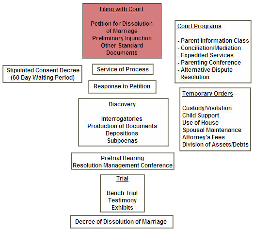- Filing a Petition: One spouse initiates the process by submitting a petition for dissolution of marriage.